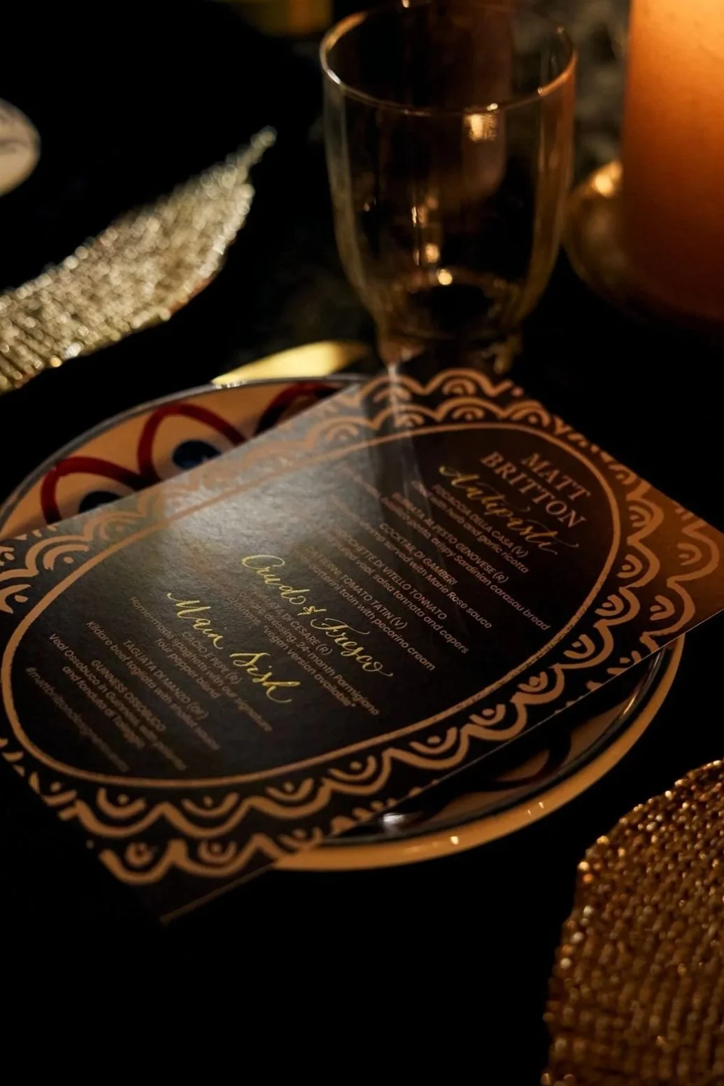 Menu with calligraphy designed for Matt Britton, styled by Grace Cahill